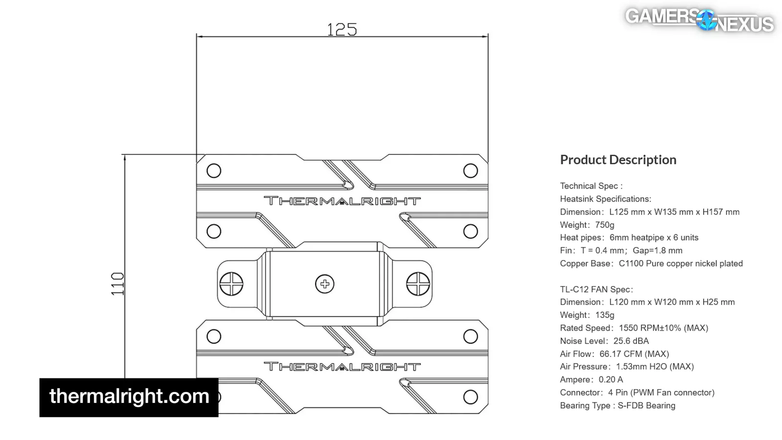 We’ll start with the physical design of the Peerless Assassin. The cooler measures 125mm wide x 135mm deep x 157mm tall. For the average case (most mid-towers on the market), the max cooler height is in the range of 155mm to 165mm, and with the the advent of the RTX 40 series, that has increased even further because now they have to fit the extremely large 40-series cards.
