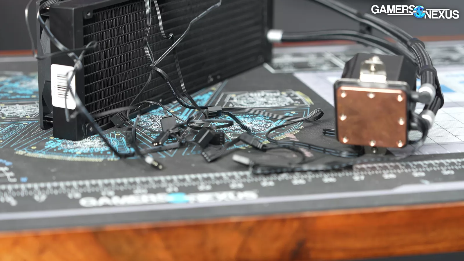 It’s a wonder how Thermalright is able to make any money at all with some of the prices, where it manages to undercut major cooler brands significantly. The big difference with liquid coolers versus air is one that we can’t reasonably test in a review window: If an air cooler works well, it’s unlikely to have any kind of long-term failures (other than maybe the fan, which is cheap to replace). Liquid coolers can have issues with gunk build-up, corrosion, or pump failures. Gunk build-up is the main concern and happens normally from chemical imbalances or poor flux work in the radiators. That’s not something we can evaluate in a review, and we’re frontloading that consideration because it just seems like the price would have to include some kind of downside.