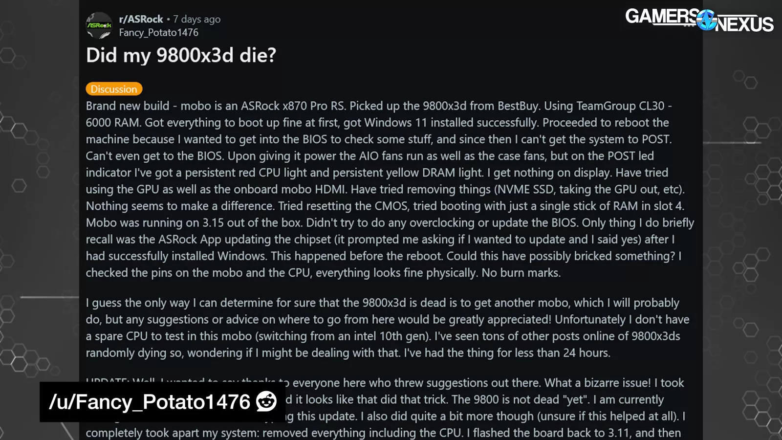 These ASRock and 9800X3D failures are different: They’re happening sometimes months into use, meaning that the systems did work, but stopped spontaneously.