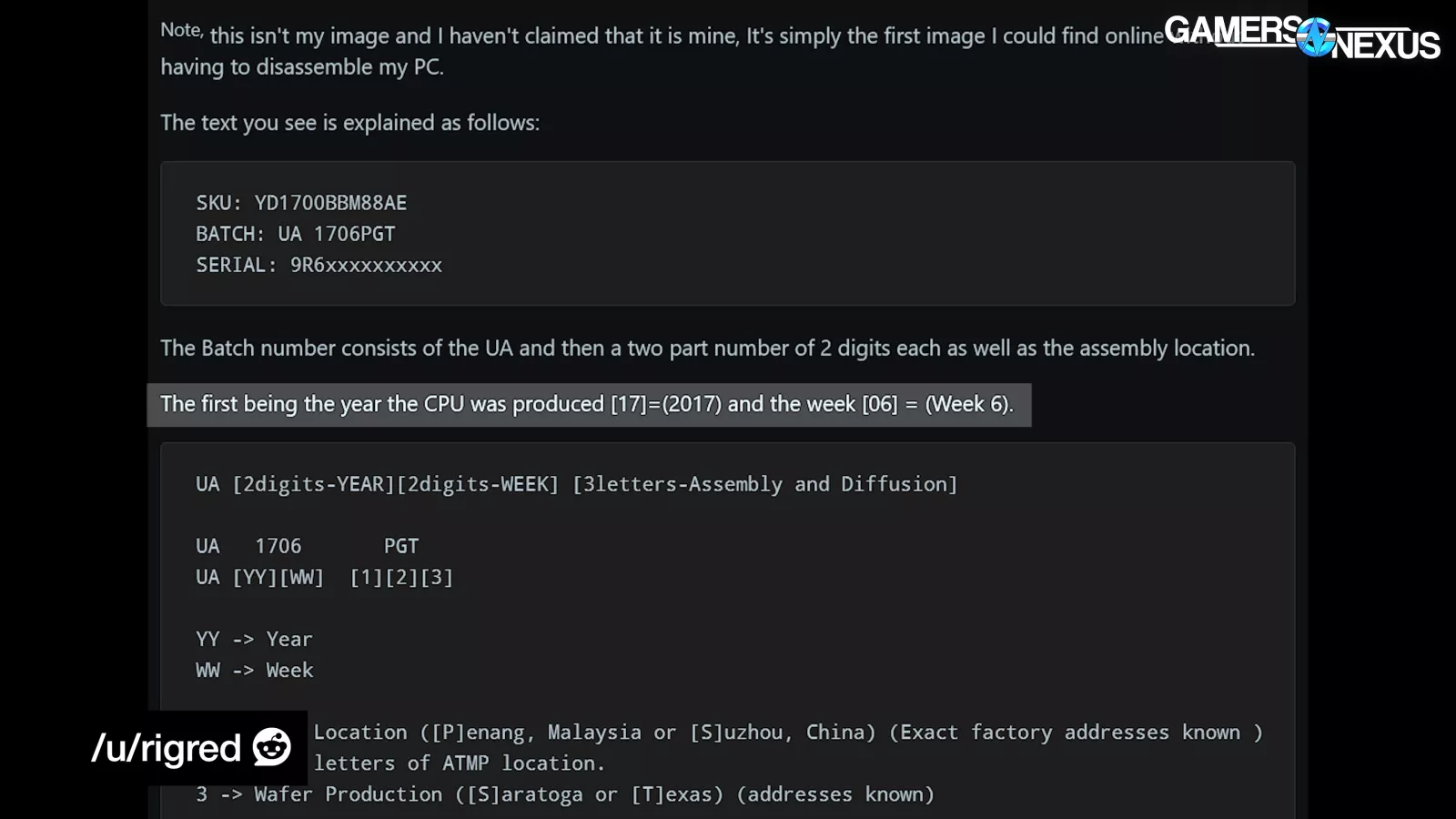 But remember that this could be completely coincidental and doesn’t necessarily guarantee bad batches. We at GN have CPUs from both of these batches and they’re fine. There is a lot of coincidence here: AMD’s 9800X3Ds have been in high demand and they haven’t been out too long yet. We don’t know how many batches there are, but we wouldn’t think it’s a crazy amount. Likewise, people experiencing any kind of failure, whether that’s caused by the board or the CPU, would be likely on a similar batch if they’re all building and buying around the same time.