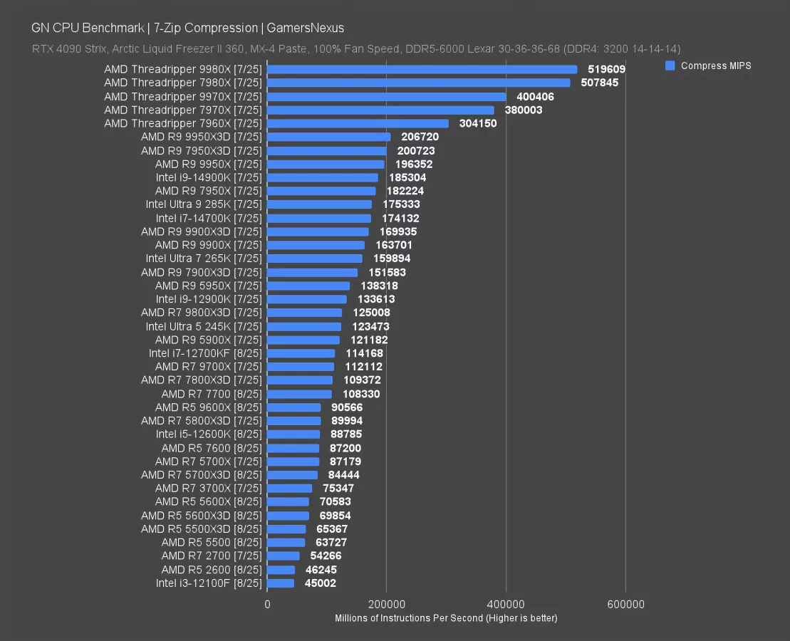 Intel’s 12600K (watch our review) has about the same performance as the 5500X3D. The 12700KF is a bit better, with the 245K (read our review) improved somewhat notably to 52 seconds, though we still don’t recommend the 200 series of CPUs.
