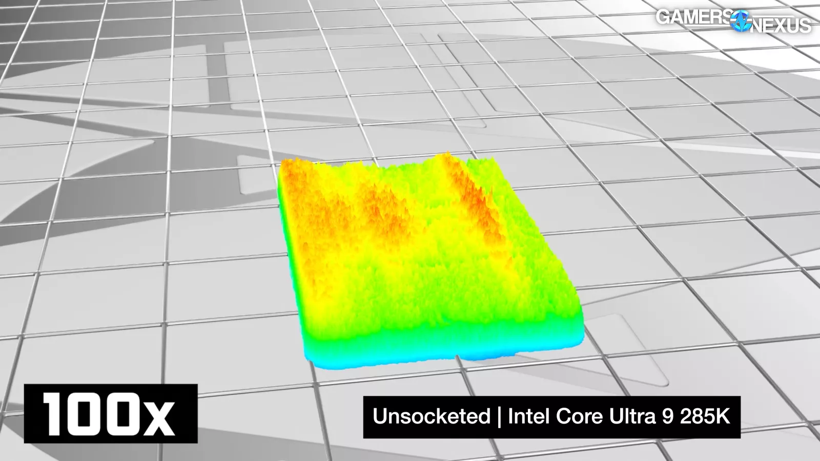 Intel is finally trying to unbend its CPUs, despite having to be on a bender to buy a $630 285K right now. Today, we’re using our laser scanner to look at the deflection in the CPU heat spreader from the different loading mechanisms, including these scans of the 285K (read our review) and 245K with different coolers installed. Today’s testing also includes specialized pressure scanning to produce pseudocolor images of pressure distribution across the IHS surface, very brief thermal testing to look at the differences with Noctua’s LBC (Low Base Convexity) flat coldplate, and we’ll look at the mechanical aspects.