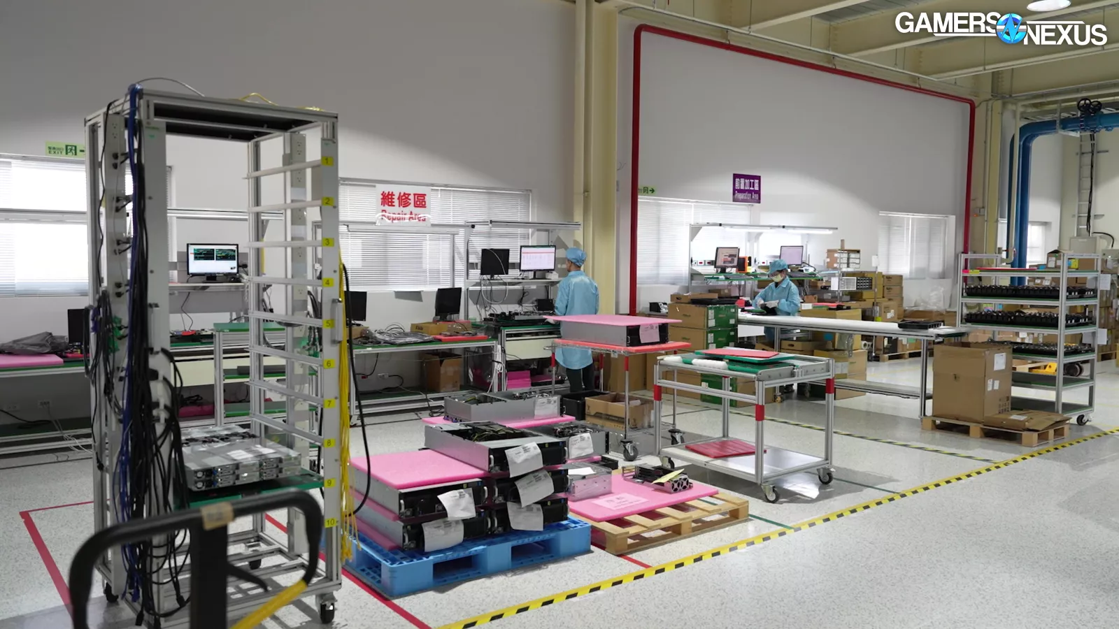 The testing suite is largely developed by the factory itself, with software designed to alert technicians to bad components or test failures. Anything that fails goes to the repair station, where technicians will identify the bad part and rescue the rest of the server. Some bad components, like sticks of RAM, can be sent in for board-level repair by the original supplier -- especially since many of these factories are local to Taiwan, making it logistically easy.