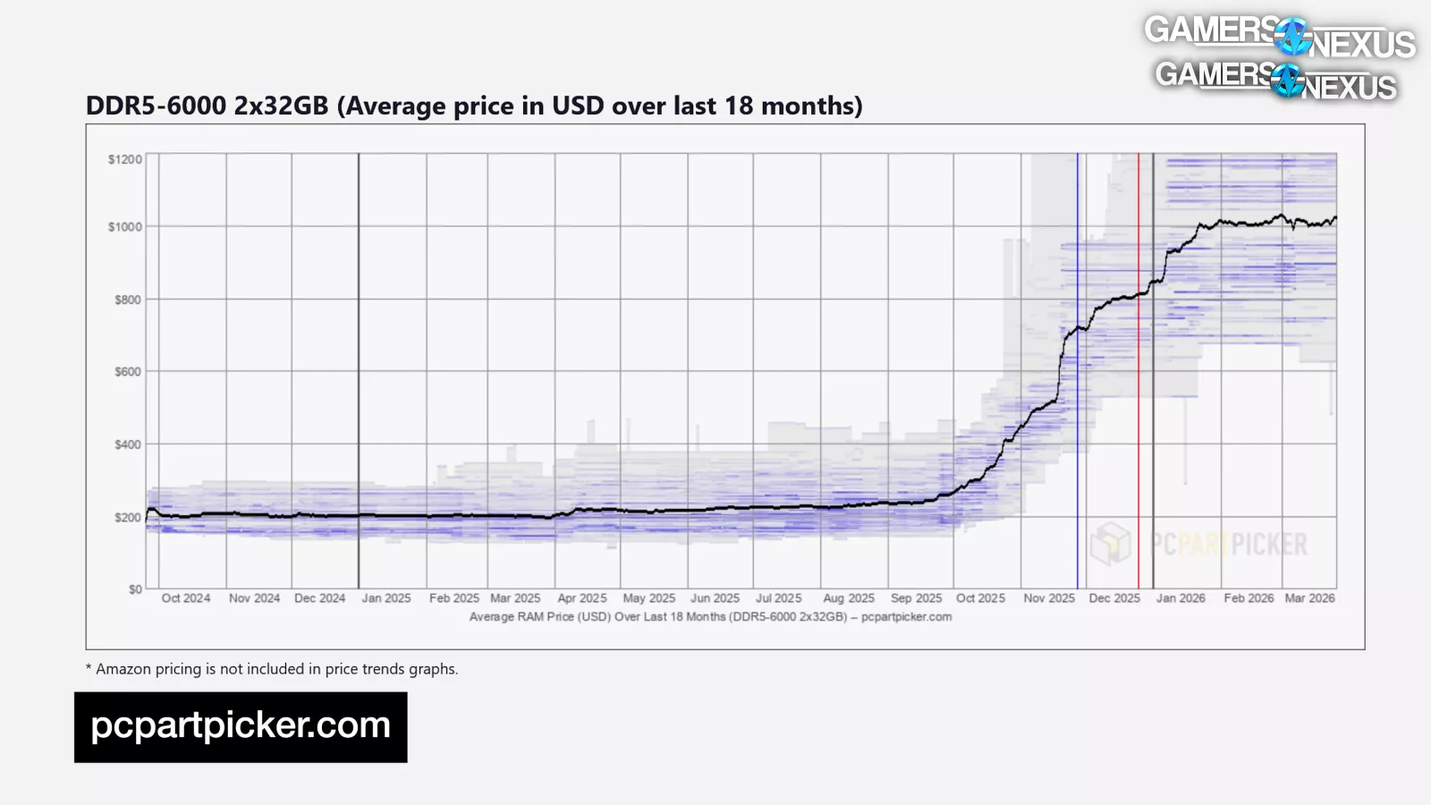 | SSD Price Trend | M.2 NVMe SSD (2 TB) | GamersNexus11/12/2025 to 03/12/2026 | |||