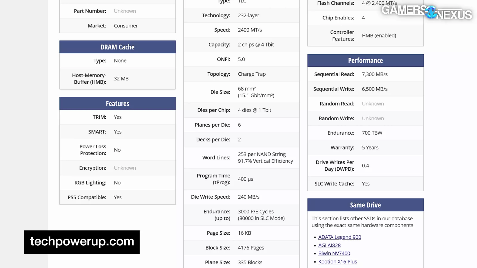 The Fanxiang S880, using YMTC NAND, is comparable to each entry by advertised read/write speeds. We have not tested these devices to validate the claims, but did check the marketing spec sheet for the comparisons.