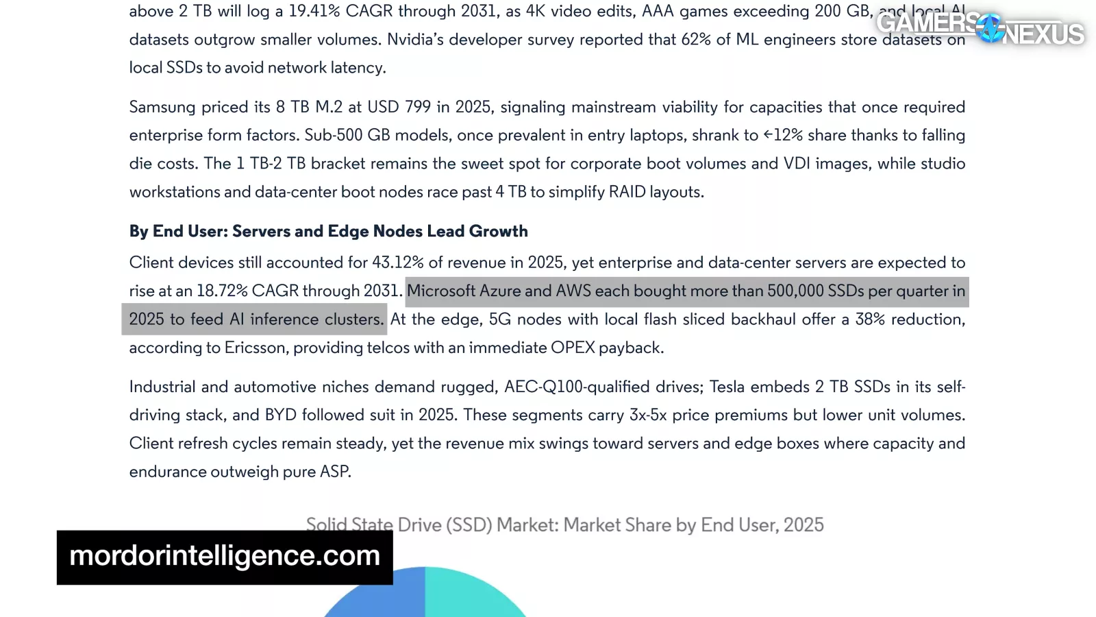 “Microsoft Azure and AWS each bought more than 500,000 SSDs per quarter in 2025 to feed AI inference clusters.”