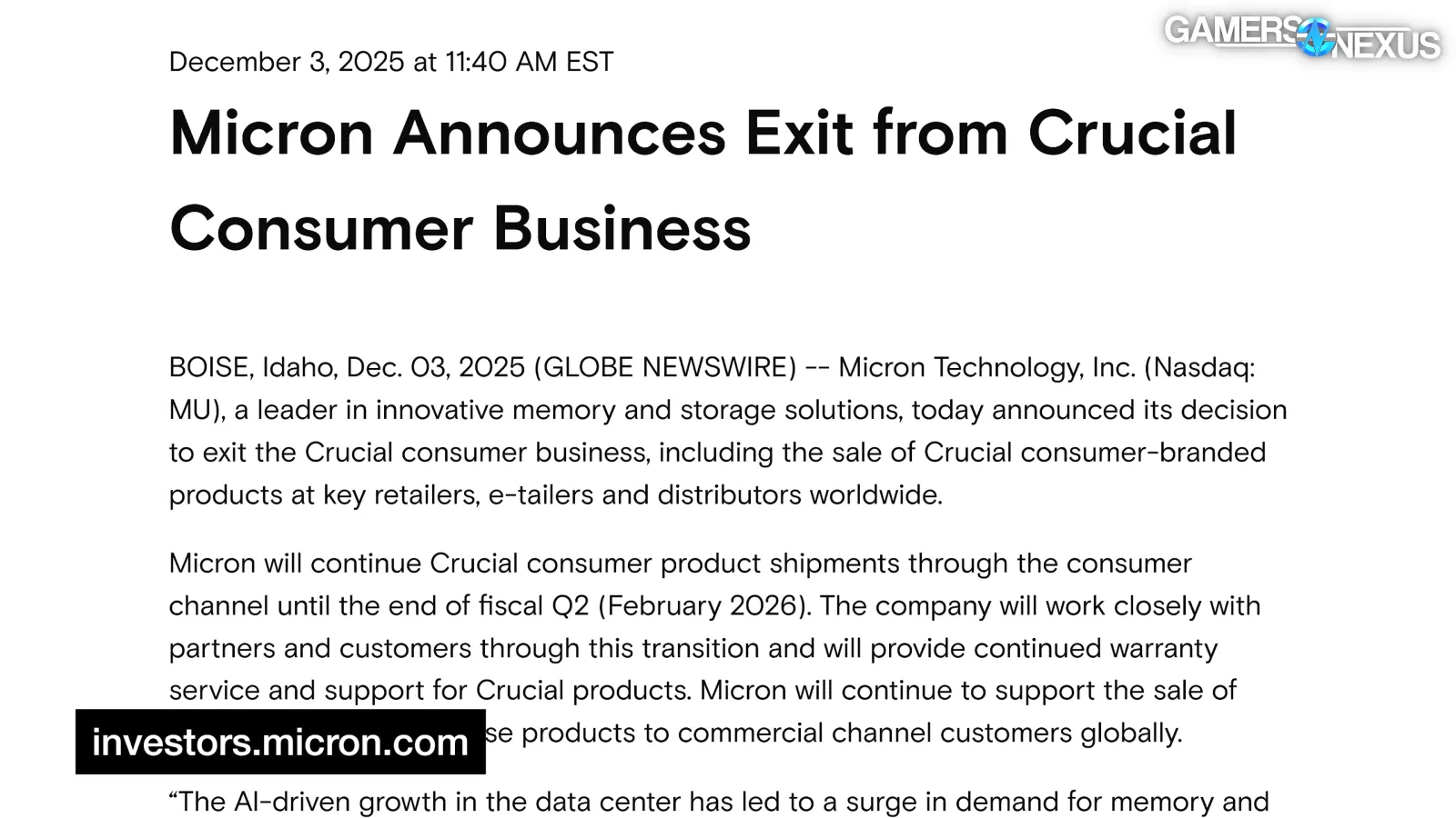 Micron recently exited the direct-sale memory business (as in, RAM) for its Crucial line, so there are some other company decisions contributing here.