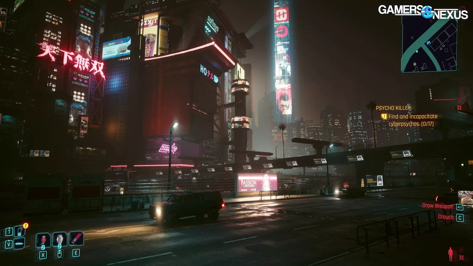 Also, if CD Projekt is reading, PLEASE fix the settings menu. Individual settings get reset constantly for inscrutable reasons. We've had situations where we applied settings, clicked "run benchmark" in the settings menu, and the settings at the end of the bench were different from the ones we'd set at the start. It's extremely difficult to have confidence that the settings are ever what they say they are.