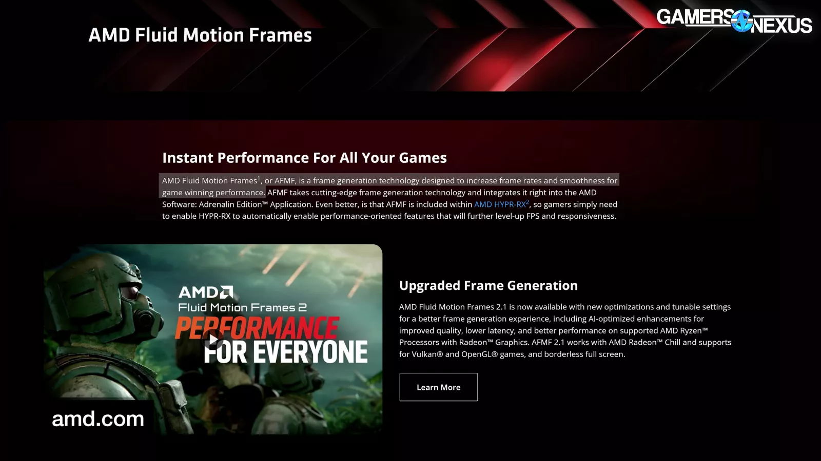 We compare AMD's in-game frame generation, AFMF, and FSR against “native” rendering in many games