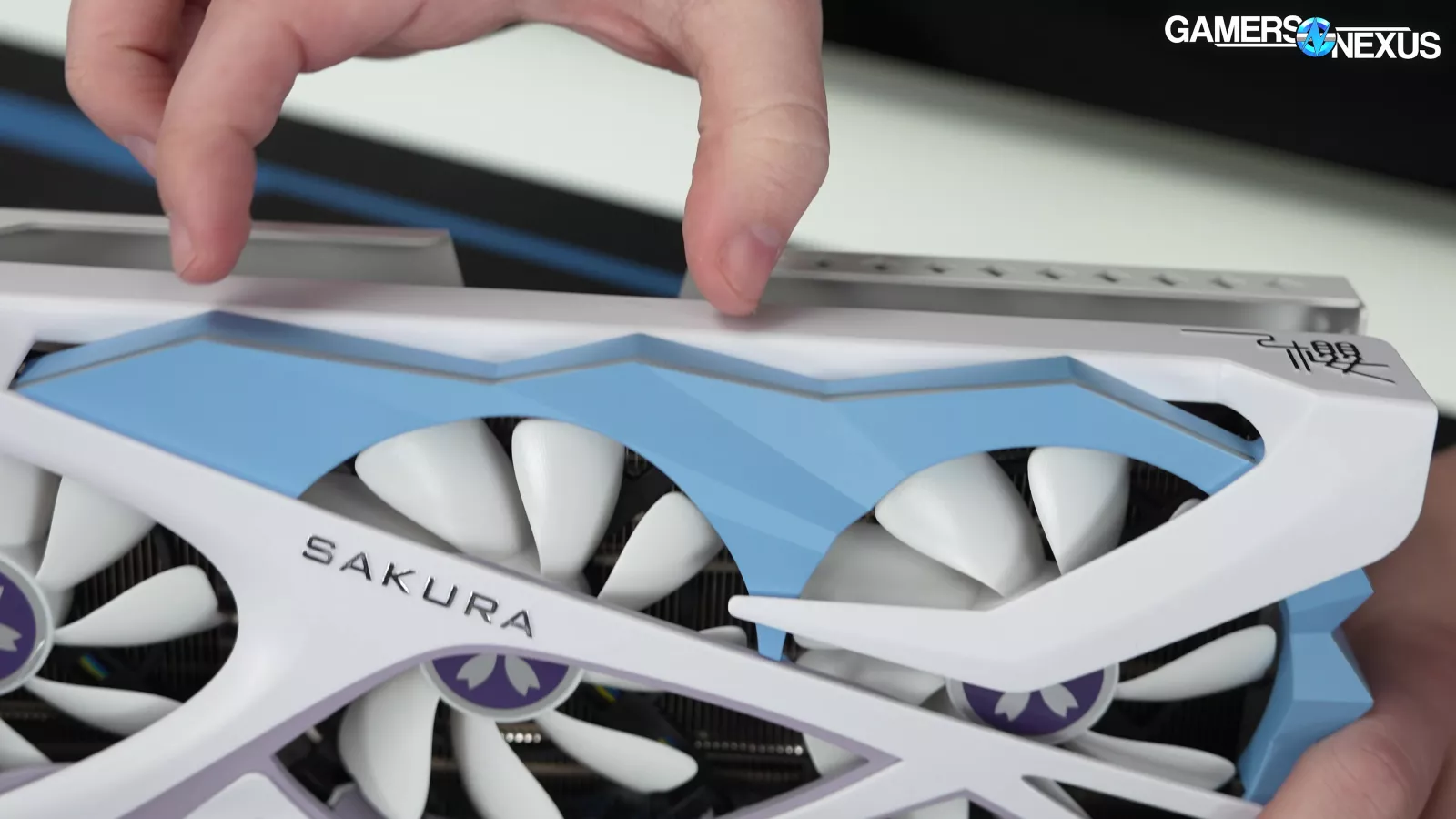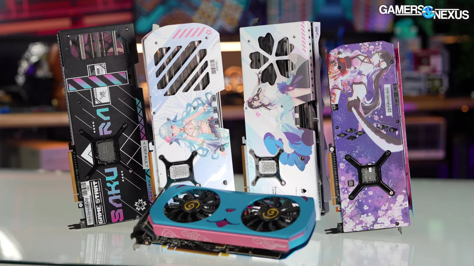 This is the Yeston RX 9070 GRE Sakura Waifu edition. It doesn’t have the scent module that the Sugar Atlantis 9070 XT (read our review) has, sadly, but it does have all the style of the previous Sakura models.