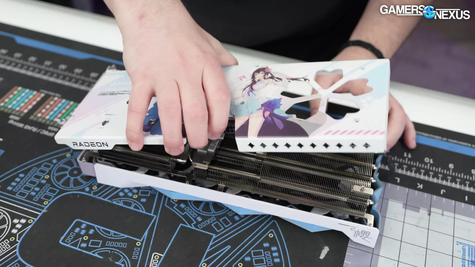 We also ran a quick acoustic test with the Yeston RX 9070 GRE Sakura in our hemi-anechoic chamber that we built for controlled noise testing. In this testing, we put the Waifu in our sound chamber and test it for the acoustic frequency and noise levels of the Waifu when under strenuous load.