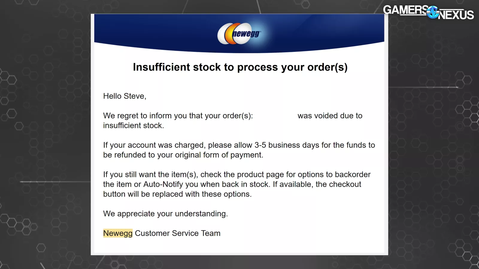 But then we received these messages from Newegg canceling our orders, and it turns out, so did literally hundreds of other people.