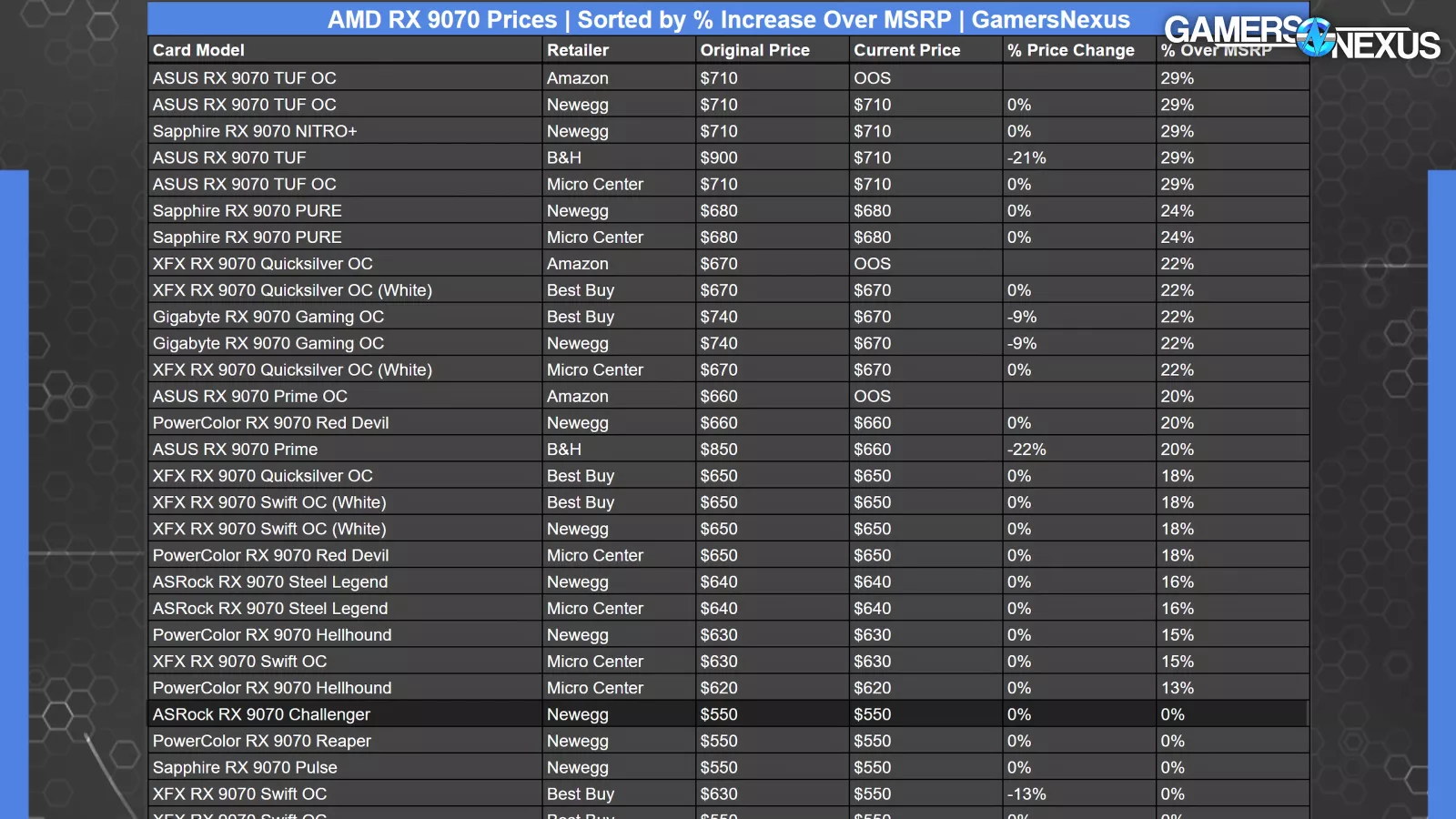 That puts the most expensive 9070 we found at $720, which is obviously atrociously bad. Nobody should pay even close to that for one of these cards.