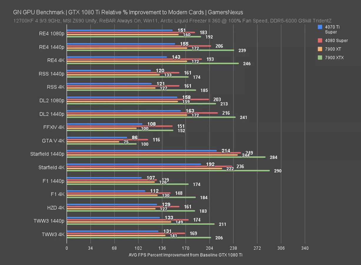 Recap: GTX 1080 Ti vs. 4070 Ti Super, 4080, 7900 XT, & 7900 XTX