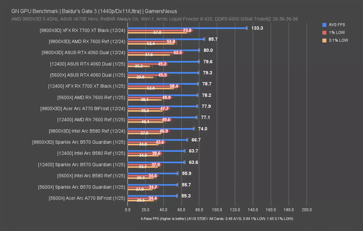 - With a 9800X3D, the B580 ran at 124 FPS AVG