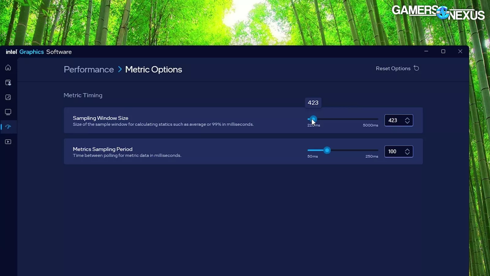 There are options to control the sampling window size (averaging period) and sampling period (the time between polling), but changing them affects the numbers being shown in oddly proportionate ways that don’t make mathematical sense.