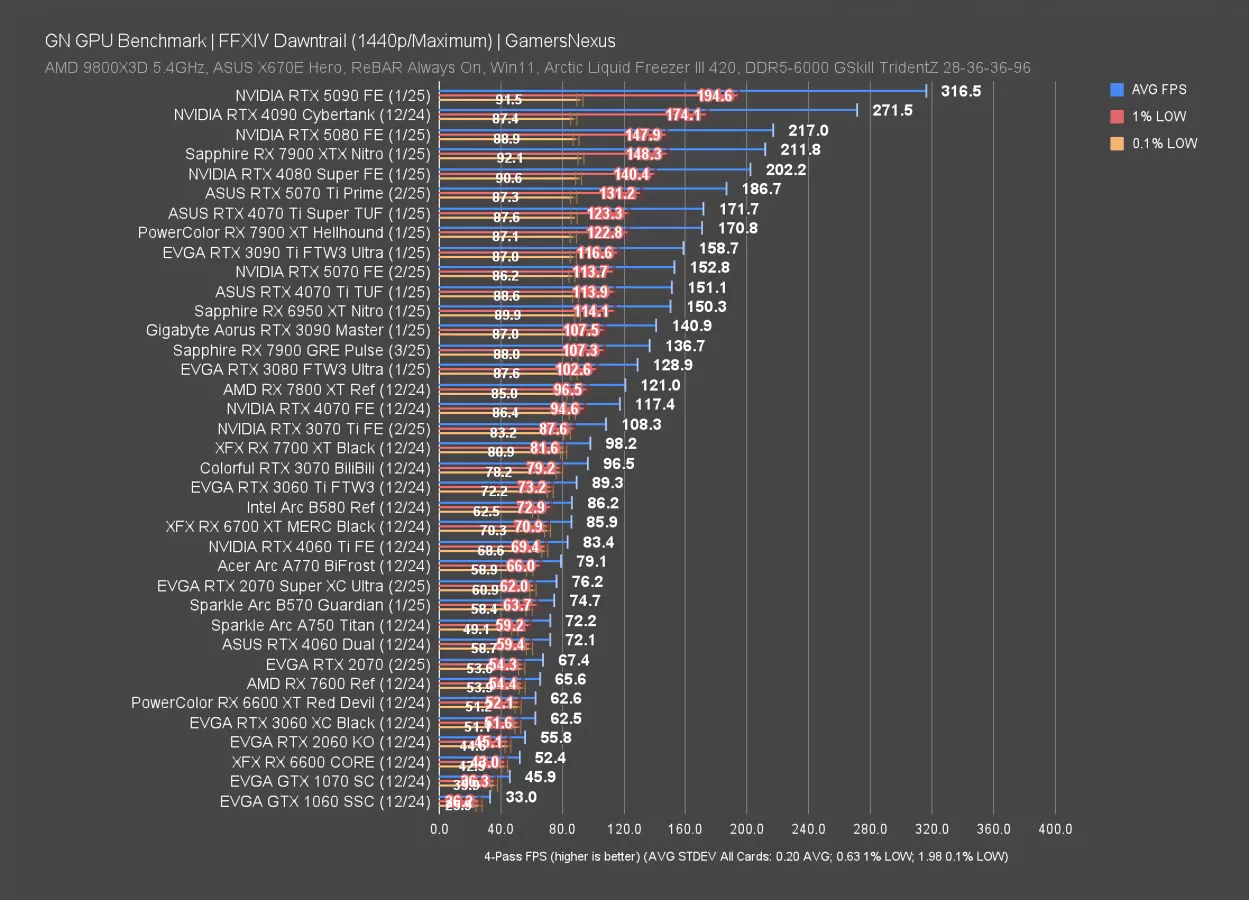 Anyway, the 7900 XT held a 61 FPS AVG in this one, with the XTX just past the 5070 Ti.