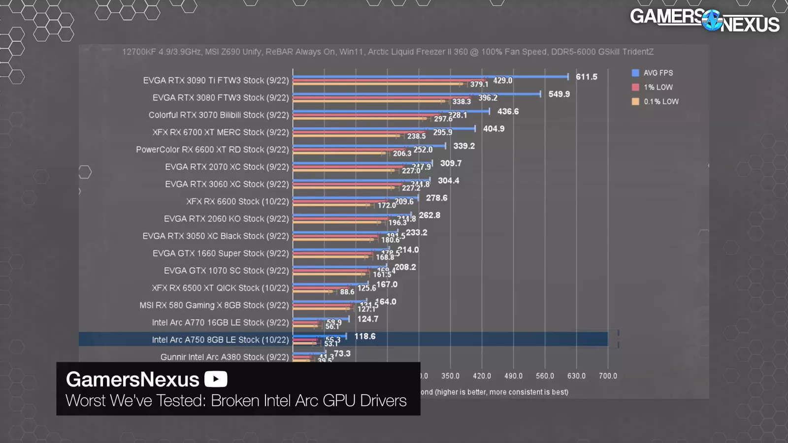 This one wasn’t an issue. It was a design choice: Arc needs ReBAR. It works without ReBAR enabled, but performance can be massively worse depending on the application. This issue is inherent to the memory controller used by Intel. Intel's memory controller doesn't perform well with small transactions; it prefers the large transactions enabled by ReBAR. Again, this is an area where we think Intel compromised well by focusing on newer platforms, which usually support ReBAR and enable it by default. It may hurt Arc's ability to fit in the ultra-budget space, though, since old hardware is less likely to support ReBAR.