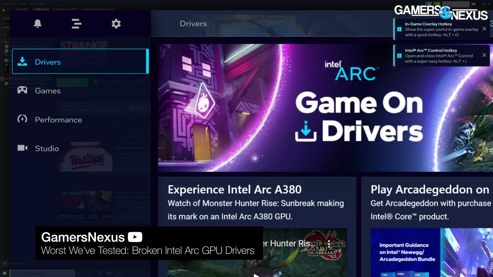Another one was a fix to the Arc Control Center. Previously, this series of actions would completely break the overlay: Opening the Arc Control overlay in a lower-res application (e.g. 1080p) on a higher-res display (e.g. 4K), then exiting, then opening the overlay on the native-res desktop. This specific problem has been fixed.