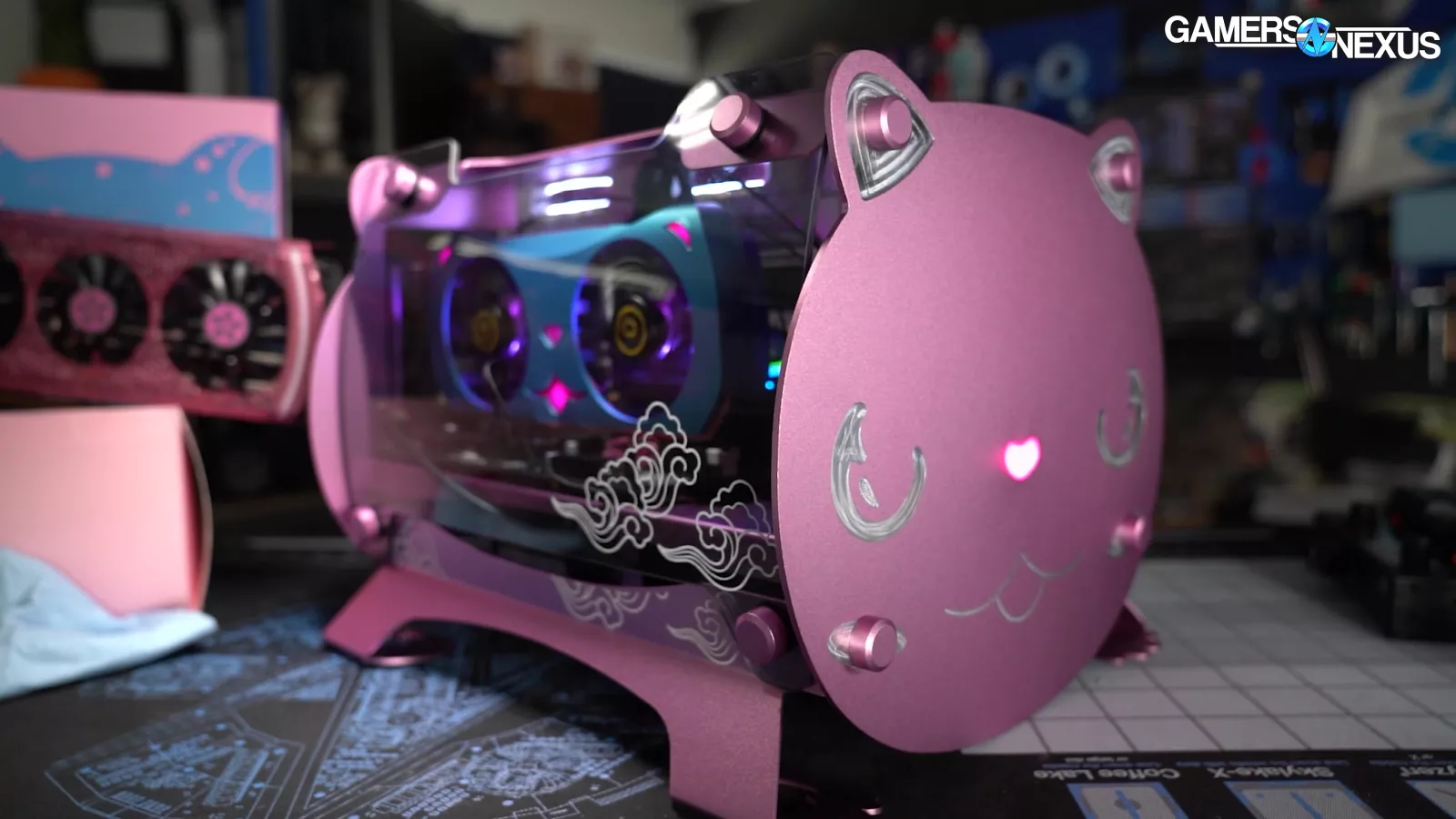 In the time since, we also looked at Yeston’s Cute Pet aluminum mini PC case. We also tested their RX 5700 XT, which we called “Waifu edition.” We later looked at their RX 6700 XT Sakura card with blue, purple, and white coloring, and most recently, we tested Yeston’s 7900 XTX Sakura Sugar GPU, which actually had a less fan-service-y thematic and blended some neon Cyberpunk-like styling in a way that makes it clear the big video card partners can absolutely do more - and it doesn’t have to just be pink and purple, either.