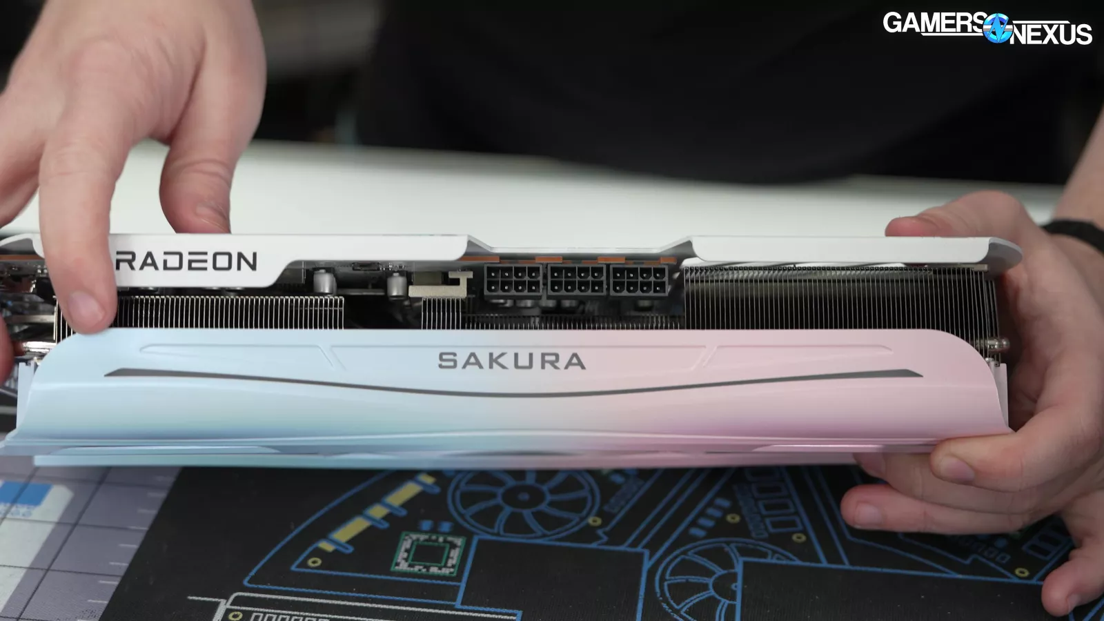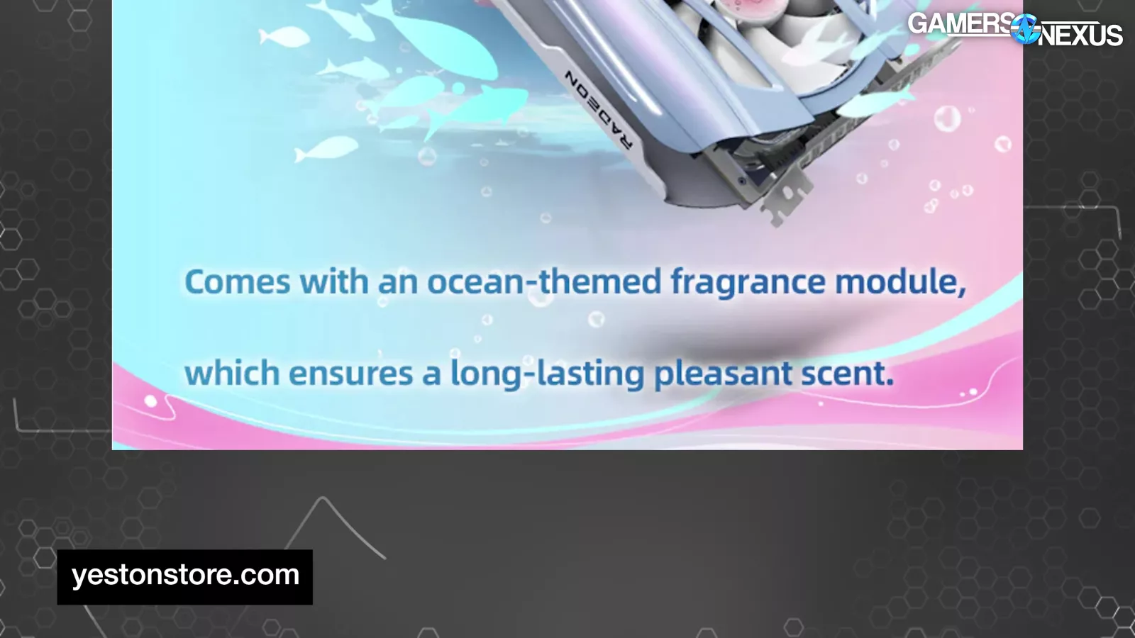 Today we’re reviewing the Yeston Sakura Sugar Atlantis RX 9070 XT OC. The card has a VBIOS switch, an LED switch, 3 fans, and it is supposed to smell like the ocean. The company even shows it getting dunked in the ocean in their promo footage.