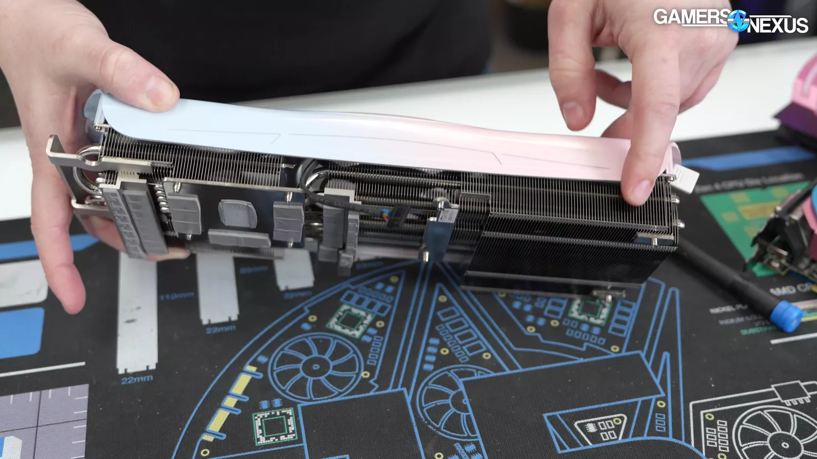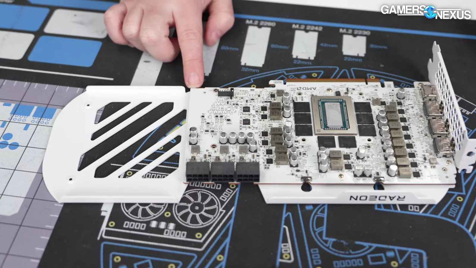 Looking at the PCB, the company has really good attention to detail on the white board, which matches the white back plate, and compliments the light-colored shroud on the front well. The color matching is cool to see.
