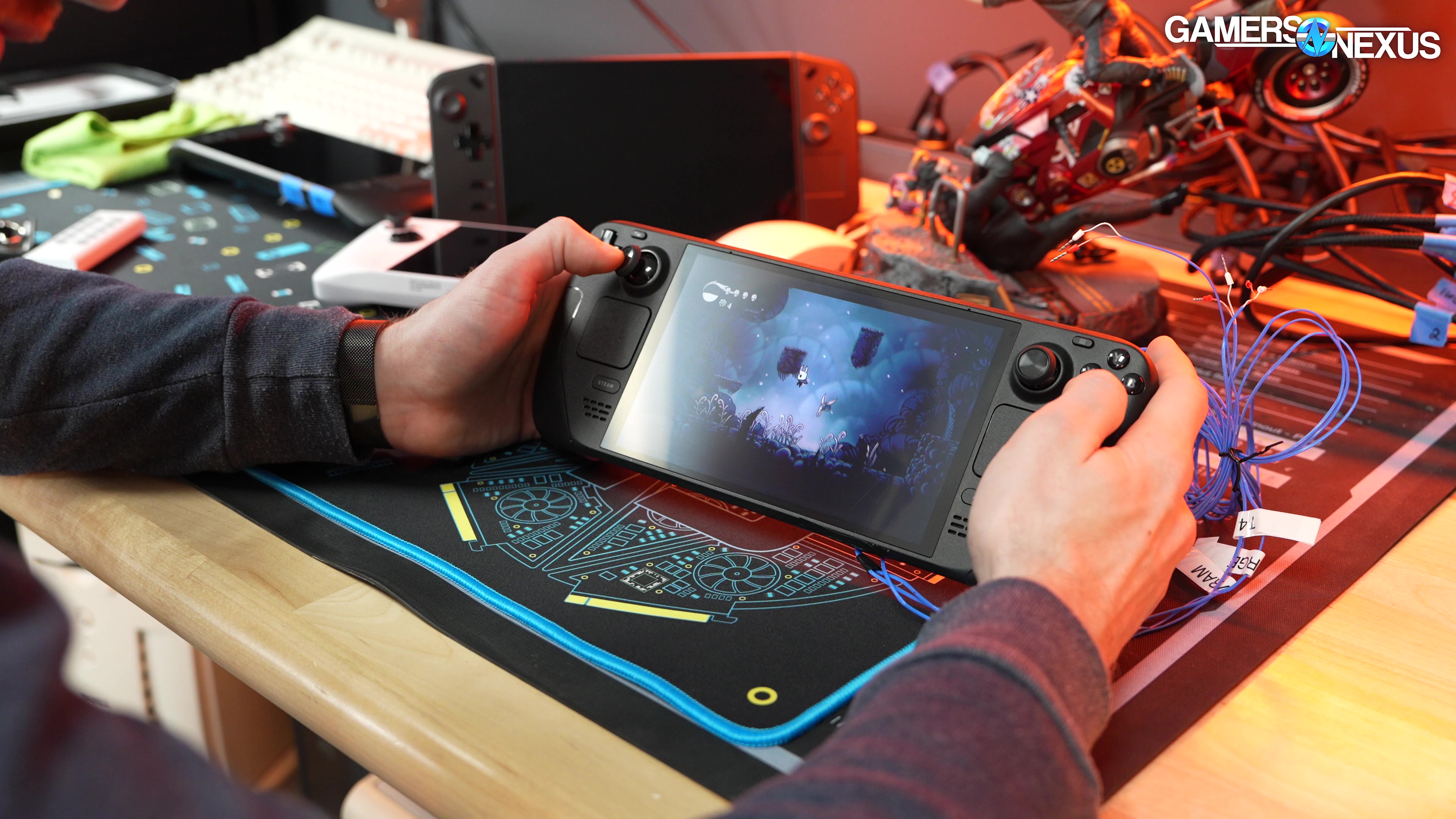 When the Deck OLED came out, we were quick to get an in-depth tear-down detailing the component changes. Valve changed a lot, and now, some months later, we’ve spent a lot of time with the OLED as the market has settled. In this review, we’re taking a long-term user approach to reviewing the Deck OLED: We’ve used the device a lot and had more of a true user experience, putting us in a position to talk in more detail about the subjective and objective aspects of the OLED variant of the Deck. This also gave us time to run into issues, like a headphone static problem.