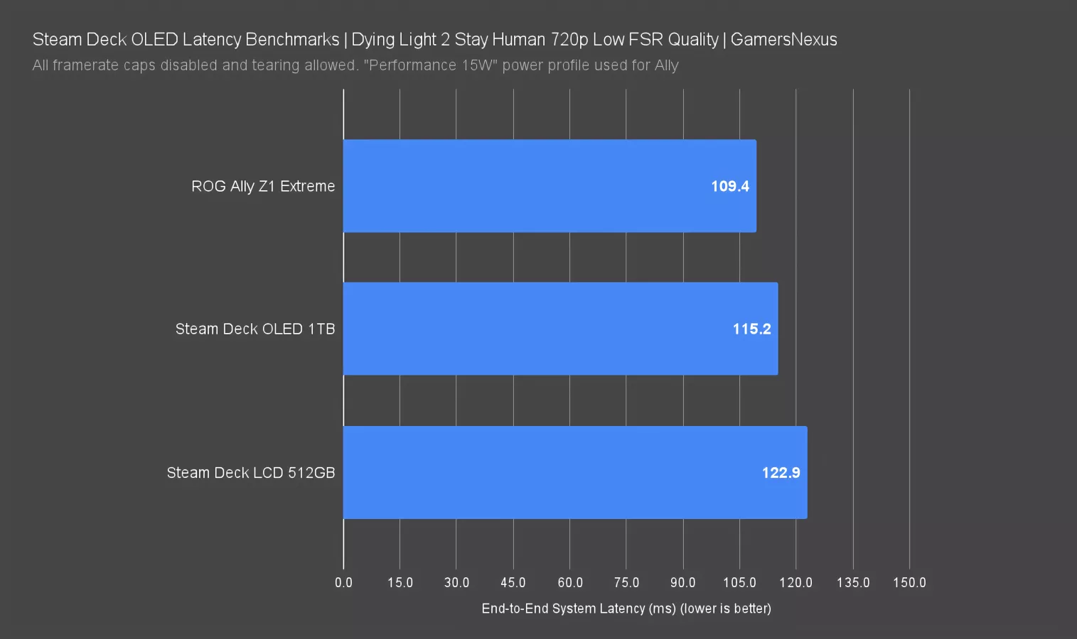 In general, the OLED does reduce latencies versus the LCD, but in most cases the easiest way to reduce latency is to increase framerate, whether that means lowering settings or using more powerful hardware. If you apply any kind of framerate cap, it will increase latency. The Ally still struggles with frametime pacing in some games, but not all, and it has improved significantly in some tests versus the original launch data.