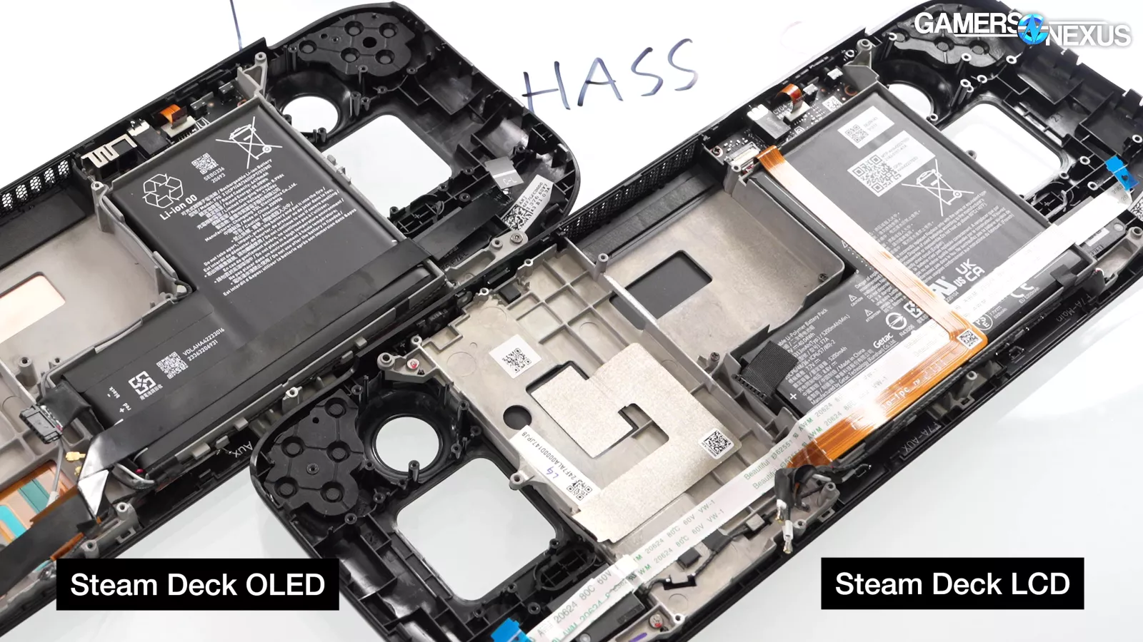 The new battery is a 50Wh part, which was possible thanks to the smaller OLED screen. The OLED isn’t as thick as the original LCD unit, and Valve used that extra space to increase battery thickness.