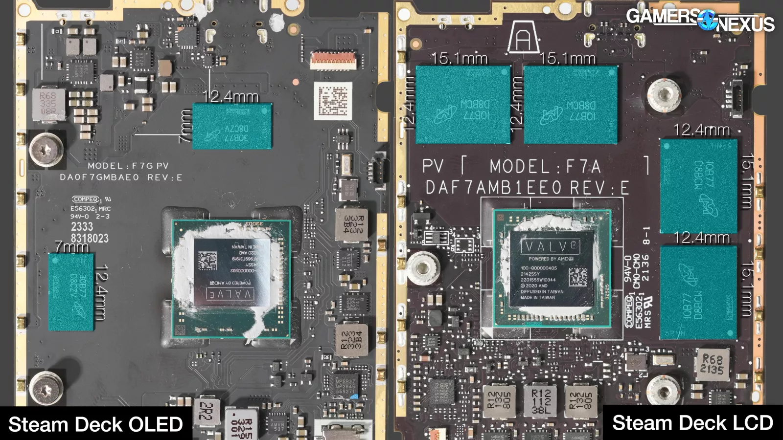 One of the major changes to the internals was the rotation of the SOC, which likewise allowed a rotation of the taller VRM components away from the underpass that allows the fan to supply air to the motherboard. Valve also went with shorter inductors in some places, which also reduces impedance to flow. The new memory chips are also about half the height of the original, which allows more flow into the rest of the board.