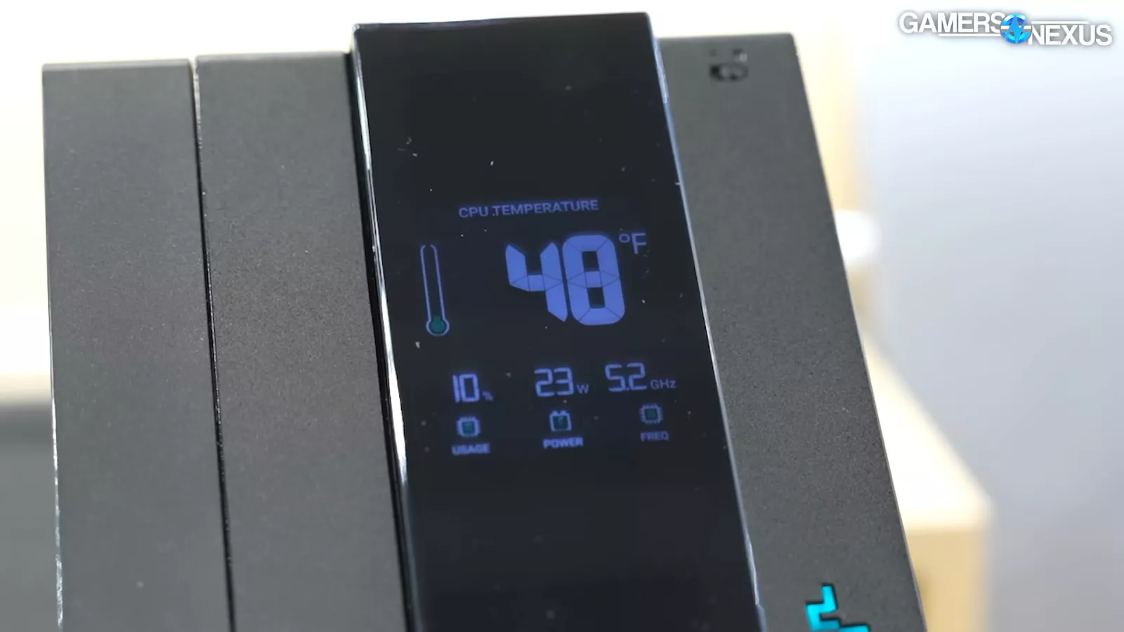 The Assassin IV VC Vision (VC meaning Vapor Chamber, and Vision meaning there’s a screen on top) will launch only in this configuration, so there won’t be one without the screen. It’s pretty straightforward, with temperature, CPU utilization and frequency, and power consumption.