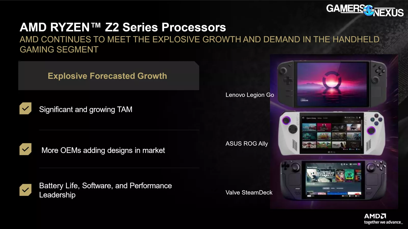 AMD’s Z2 SOC follows-up the Z1 and Z1 Extreme mobile solutions that were found on some handheld devices. AMD has also offered mobile chips like the 7840U and 8840U that have been in handheld devices and are comparable.