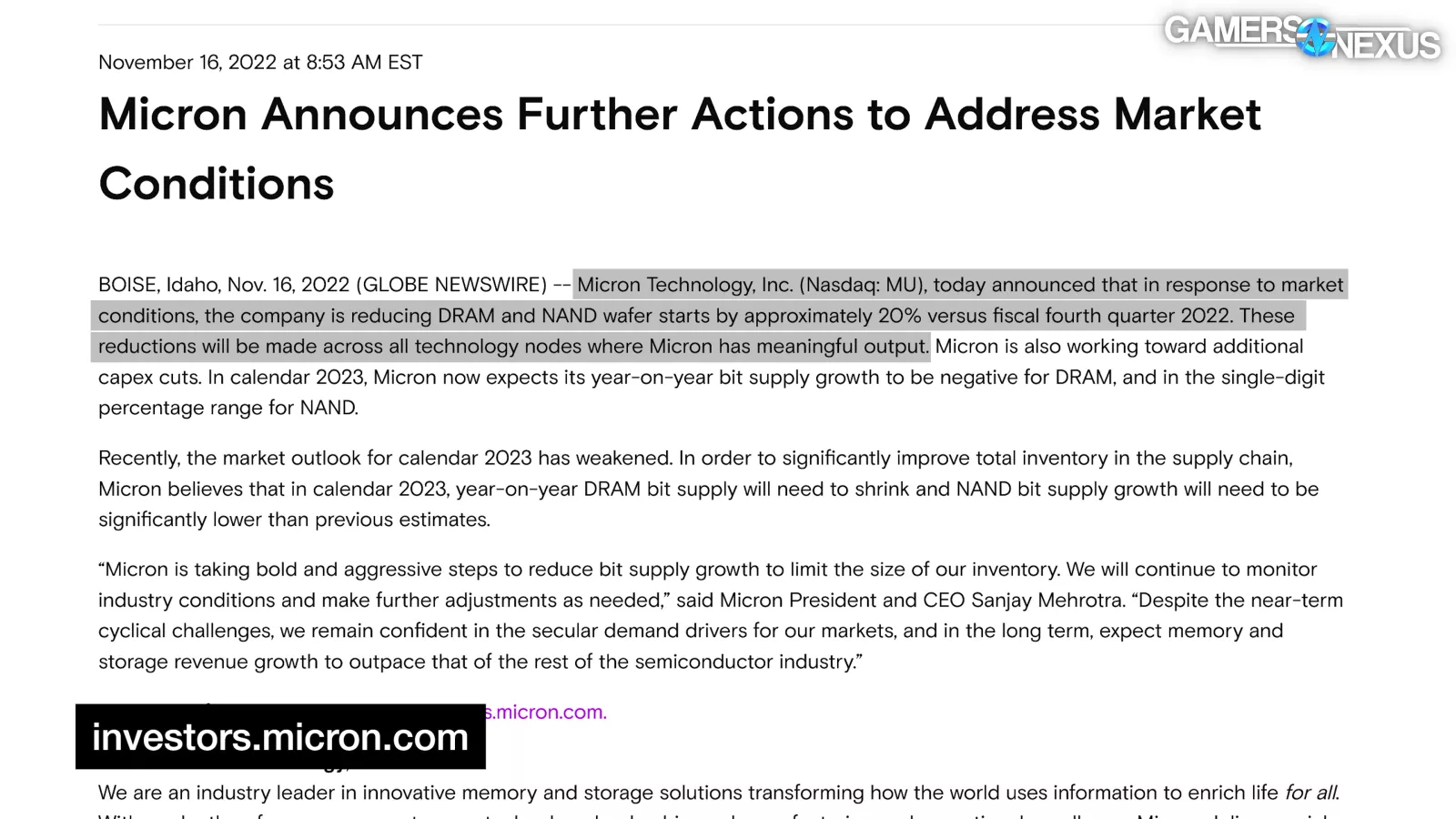 The most significant cuts occurred in late 2022 and early 2023, around the same time global DRAM revenue decreased by an unprecedented 30% QoQ in Q3 2022.