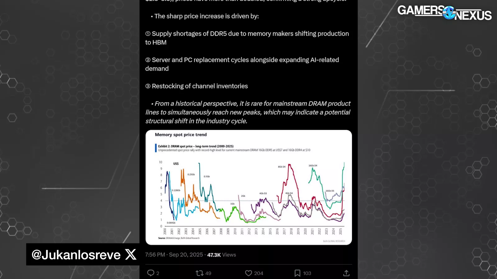 Basically, the DRAM industry is undergoing the same experience that GPUs have in the past few years. And if you’re wondering if things are going to get worse, the answer is yes. It’s probably going to get worse. This isn’t just sensational framing. It’s not good for consumers out there right now.