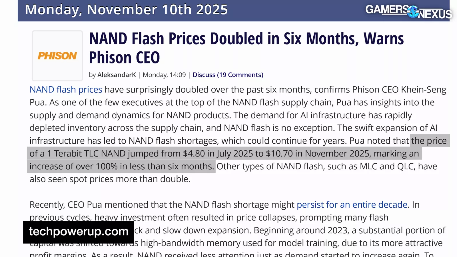 This month alone: Sandisk raised its November contract prices by 50%, Samsung is reportedly considering 20-30% price increases for its overseas NAND supply in 2026, and Phison’s CEO stated:
