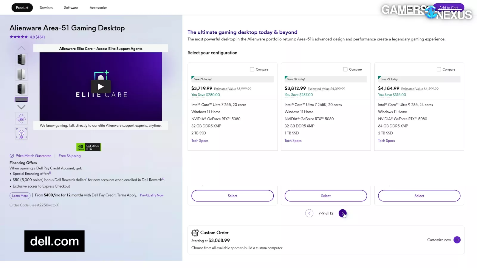 The new Area-51 comes in 13 different configurations, up from just 3 when we ordered, all with Intel Core Ultra CPUs and NVIDIA RTX 50 Series GPUs.