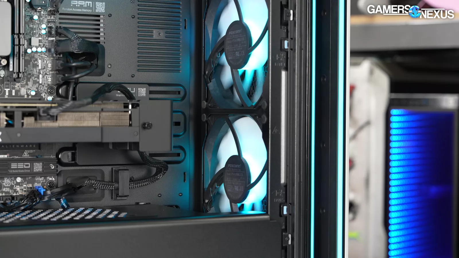 Value discussion is a total non-starter. The DIY total comes to $3,091 at the time of writing, making it $1,559 less expensive than the Alienware’s ridiculous $4,650 price tag. Expressed another way, the Area-51 is 50% more expensive than DIY parts cost; there are cheaper pre-builts out there. If you’re opposed to DIY (and we don’t have a problem with people buying pre-builts). We think the Area-51’s case is probably more expensive to produce than the manufacturing cost of our Lian Li Lancool 216 RGB substitution, but that’s obviously not enough to really sway the math. It’s also not relevant to an end user.