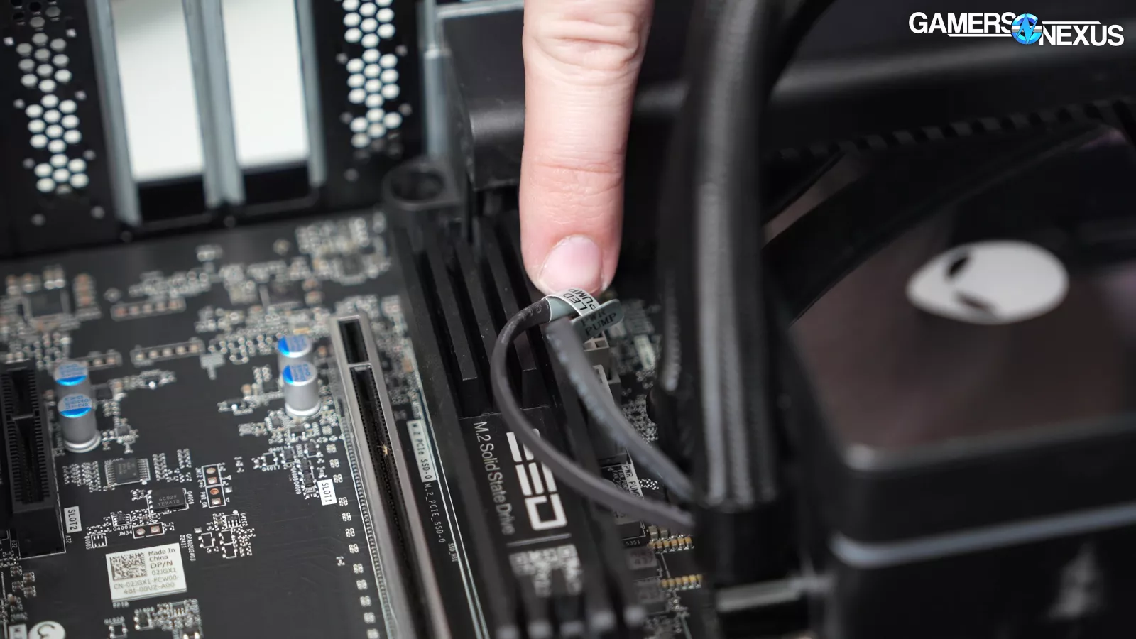 Next, we’re manually controlling the fan speeds to do some A/B testing to evaluate Alienware’s design choices. We connected all the fans to a Corsair fan controller preloaded with PWM values that roughly correspond to the values at steady-state under Alienware’s control. The GPU fans were fixed at 50%.
