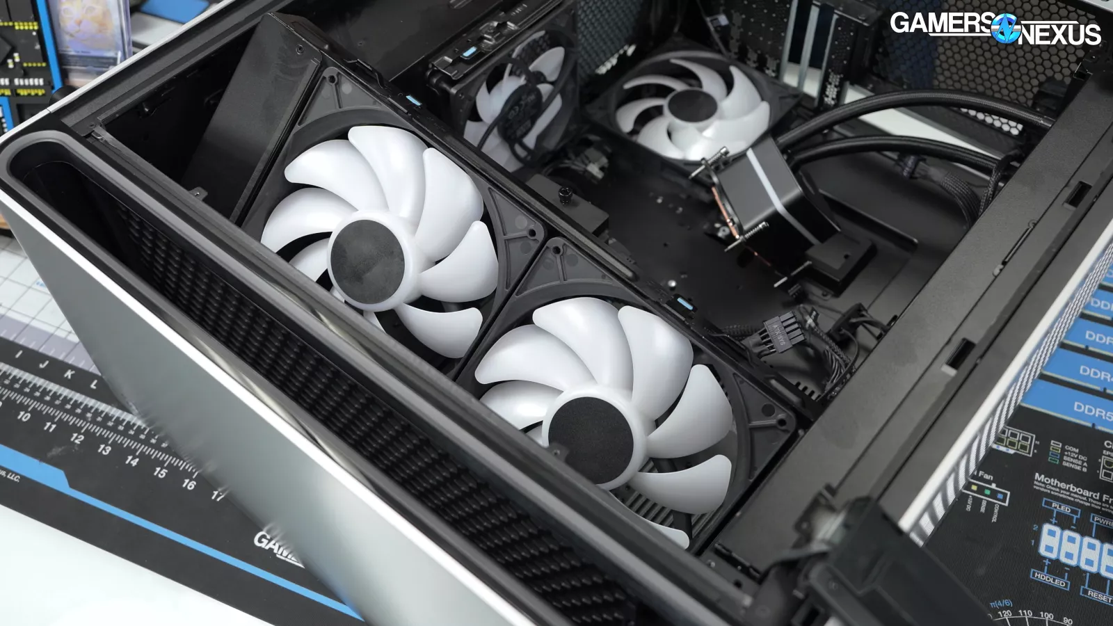 We did testing stock, with the front panel removed, and with the top fans flipped to exhaust.