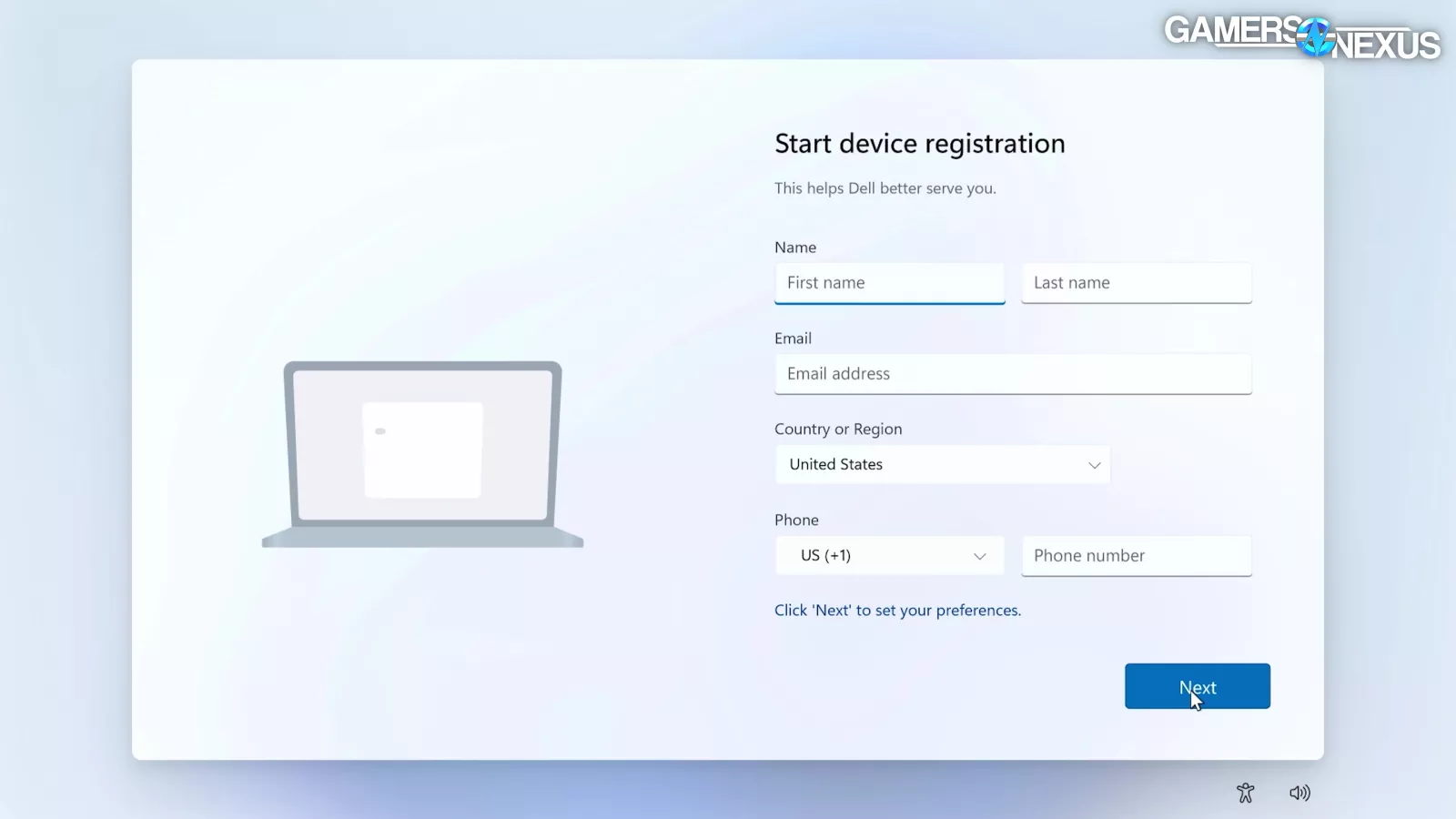 The Windows installation process was modified to include a registration form and agreements to Alienware’s terms. We can never just get a clean Windows install from Dell. The good news is that you don’t have to fill them out or agree to them, you can just press next. The bad news is that it doesn’t tell you that’s even an option.