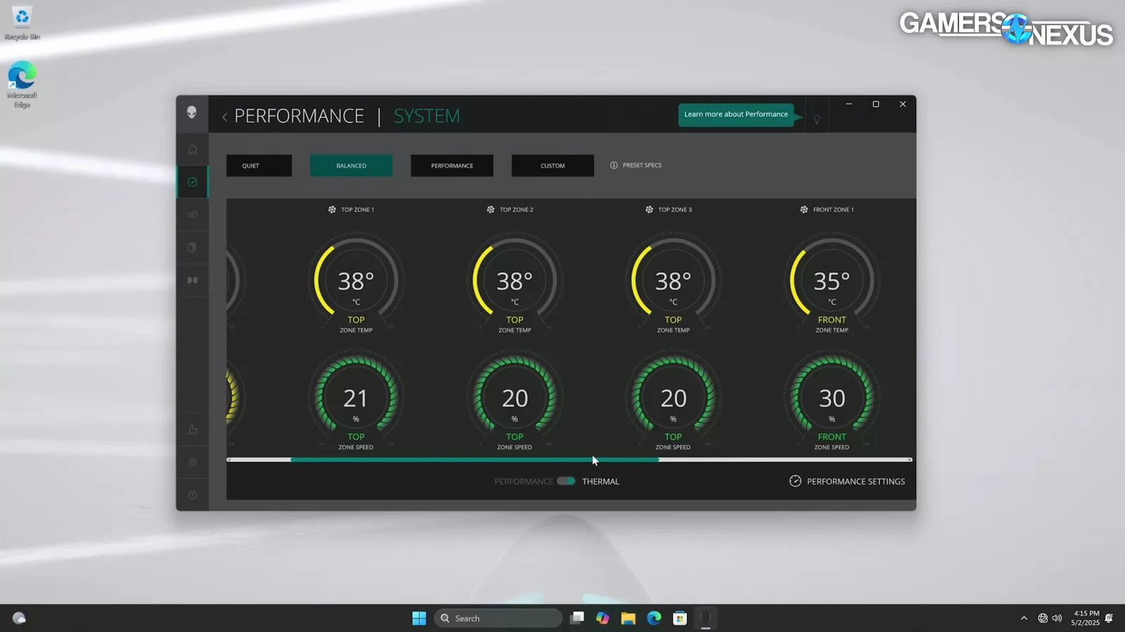Performance idle was around 24-25dBA, ramping beyond 30dBA quickly, then settling in at 35.9dBA at steady-state. It’s not objectively that loud, but is by comparison to the reserved nature of the default curve.