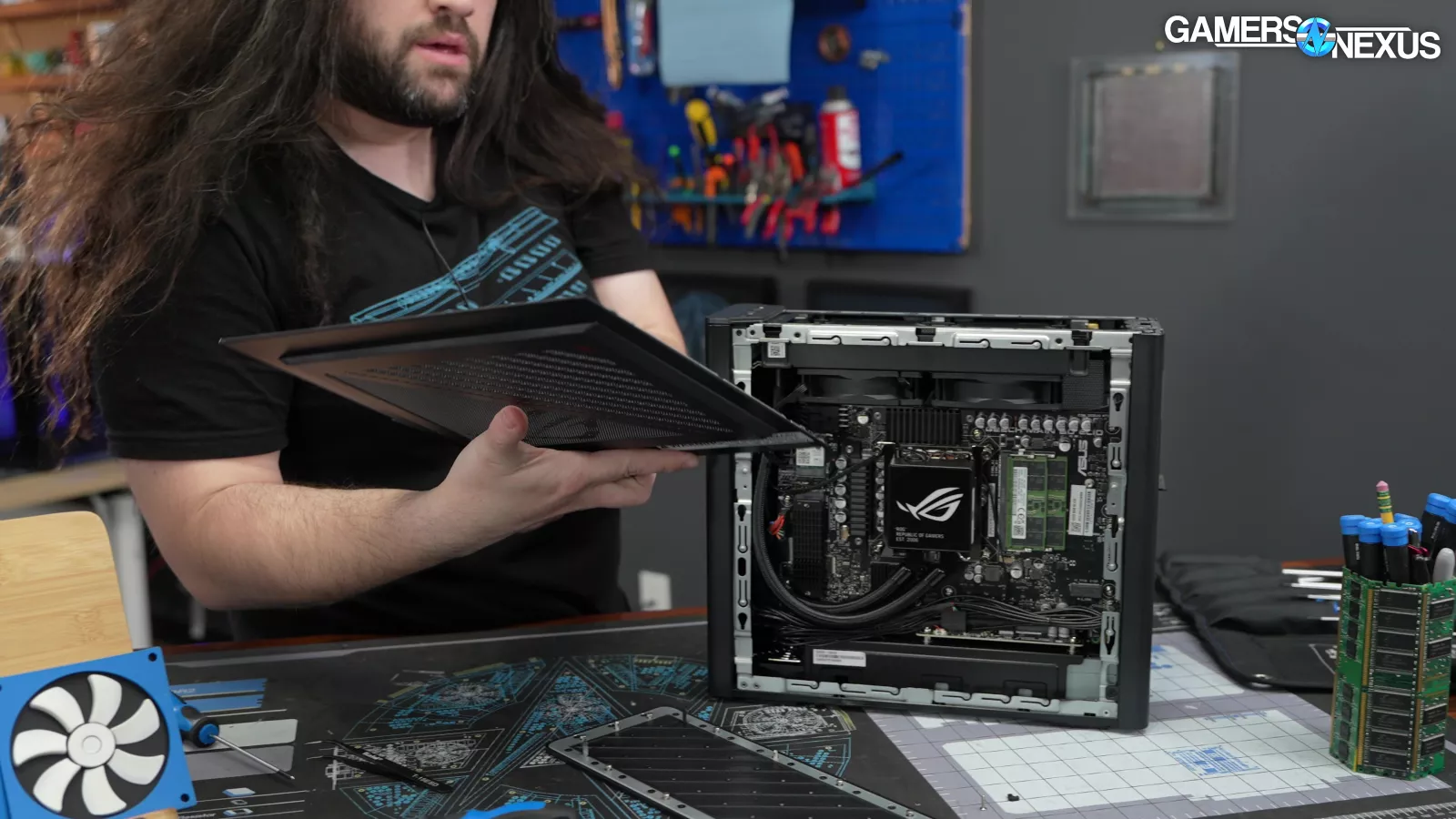 It’s got a custom-sized closed-loop liquid cooler in the top under a quick release panel.