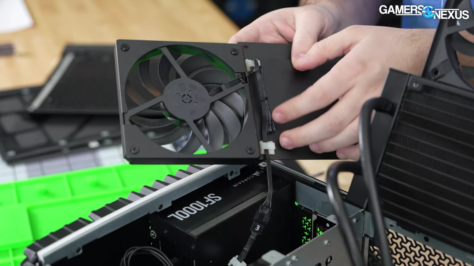 A large portion of the issue is that the rear fan on the GPU radiator, of which there are two, is actually controlled by the CPU cooler liquid temperature, and it barely sped up during the GPU-only load, like gaming at 4K.