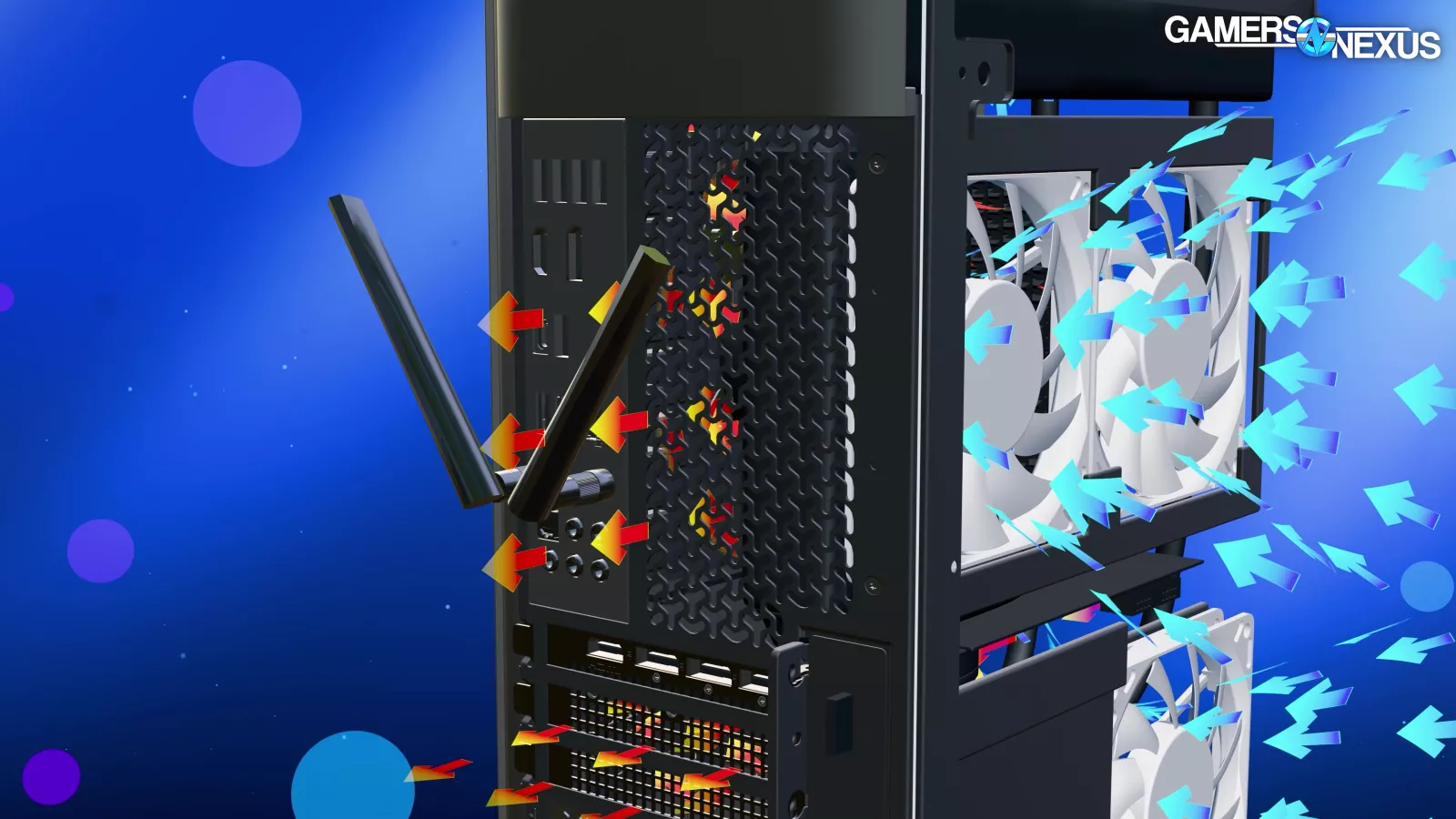 Before moving to BIOS, we’ll look at the airflow situation. We made a custom 3D animation to help visualize the airflow patterns we observed during testing.